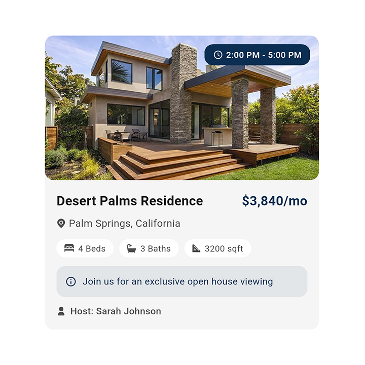Clients can request property viewings directly from the listing, making it simple to move from interest to action.