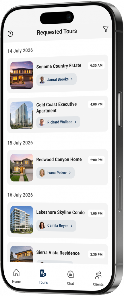 Every feature in your app is crafted to serve both sides of the real estate experience. Clients explore listings, save favorites, and request tours effortlessly, while your agents manage communications, track client activity, and update listings with ease.